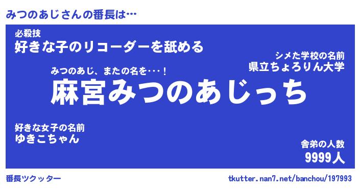 | ファンタジー風あだ名 | 『ミツフェル』『エターナルミツノアジー』 |