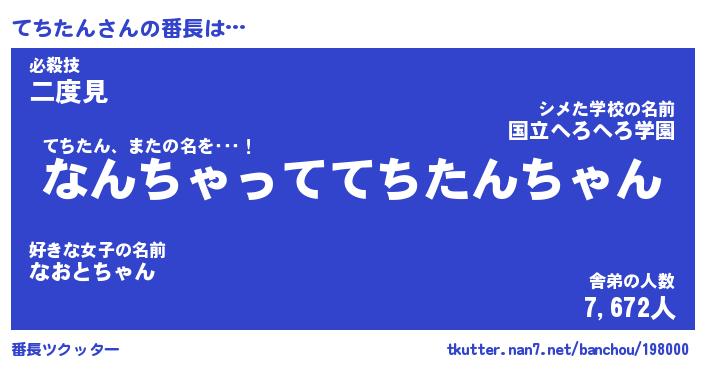 | 伝説のあだ名 | 『伝説のスナイパーてちたん』 |