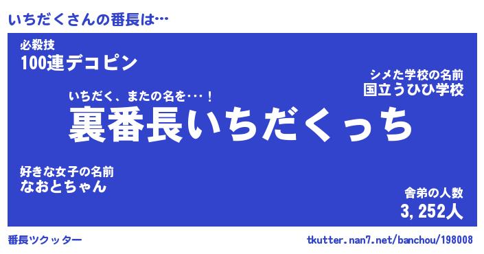 | 意味不明あだ名 | 『ペロリンいちだく』『永久保存いちだく』 |