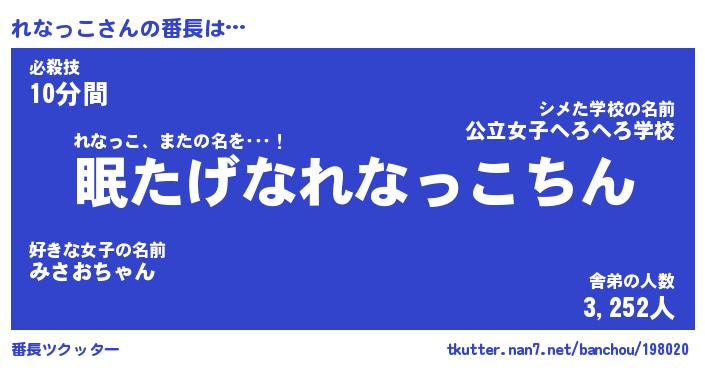 | 伝説のあだ名 | 『封印されしスナイパーれなっこ』 |