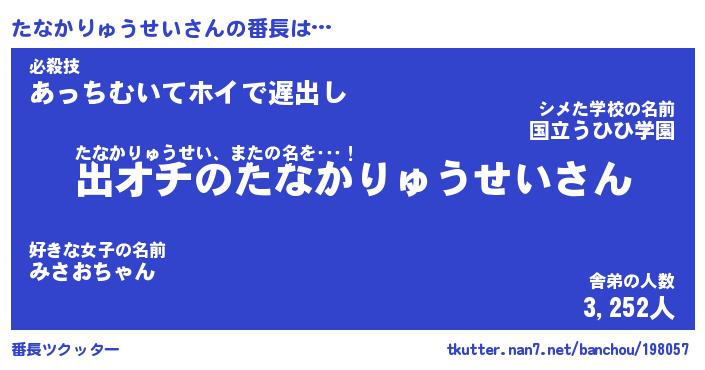 | ポケモン風あだ名 | 『タナチュウ』『タナカダネ』 |