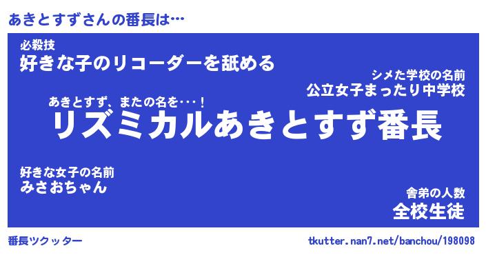 | 肩書あだ名 | 『あきとすず店長』『あきとすず国家主席』 |