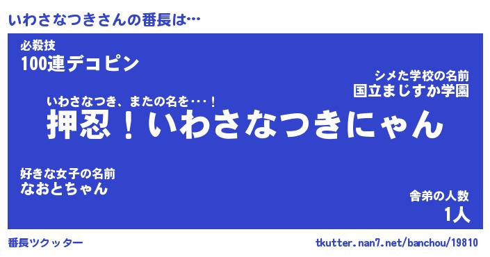| ヒーロー風カッコイイあだ名 | 『スーパーイワサナツキ』『黄金騎士イワ』 |