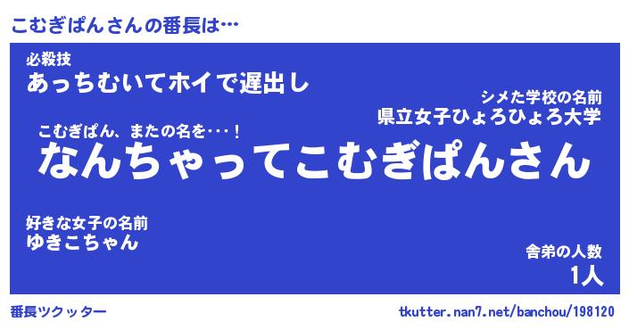 | 肩書あだ名 | 『こむぎぱん店長』『こむぎぱん総理大臣』 |
