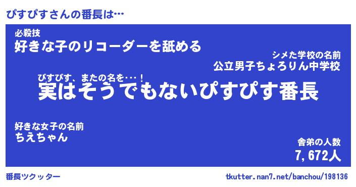 | 意味不明あだ名 | 『ペロリンぴすぴす』『永久保存ぴすぴす』 |