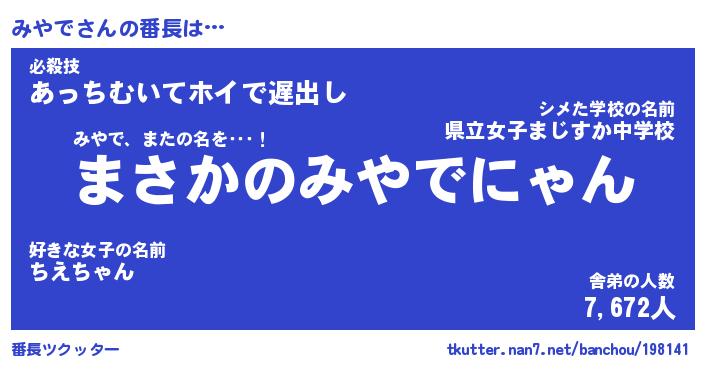 | ファンタジー風あだ名 | 『ミヤフェル』『エターナルミヤデー』 |