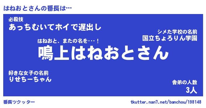 | 意味不明あだ名 | 『ペロリンはねおと』『永久保存はねおと』 |