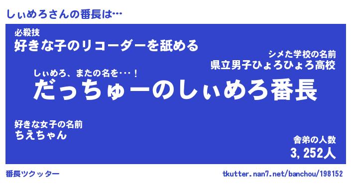 | 意味不明あだ名 | 『ペロリンしぃめろ』『永久保存しぃめろ』 |