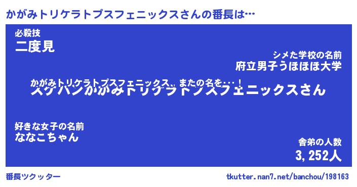 | 意味不明あだ名 | 『ペロリンかがみトリケラトプスフェニックス』 |