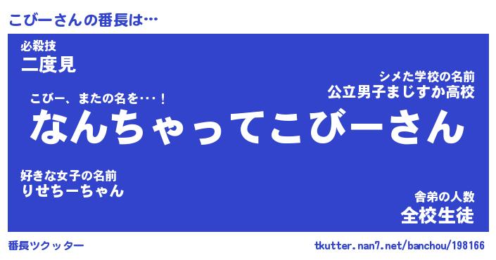 | 意味不明あだ名 | 『ペロリンこびー』『こびーフォーエバー』 |
