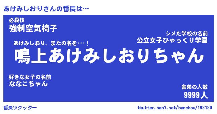 | ヒーロー風カッコイイあだ名 | 『スーパーアケミシオリ』『銀牙騎士アケ』 |