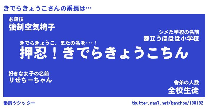 | 伝説のあだ名 | 『封印されしスナイパーきでらきょうこ』 |