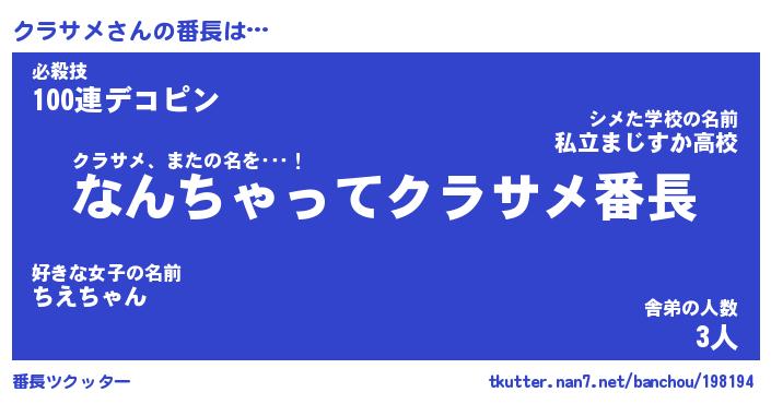| ピコ太郎風あだ名 | 『クコ四郎』『ピク太郎』『クラ十郎』 |