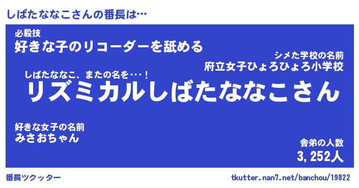 | 肩書あだ名 | 『しばたななこ店長』『しばたななこ先生』 |