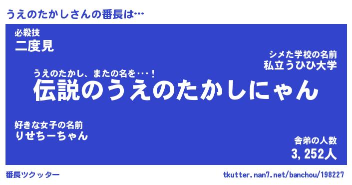 | 伝説のあだ名 | 『伝説のスナイパーうえのたかし』 |