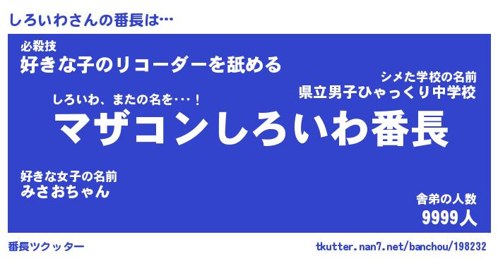 | ヒーロー風カッコイイあだ名 | 『スーパーシロイワ』『幻影騎士シロ』 |