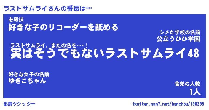 | 意味不明あだ名 | 『ペロリンラストサムライ』 |