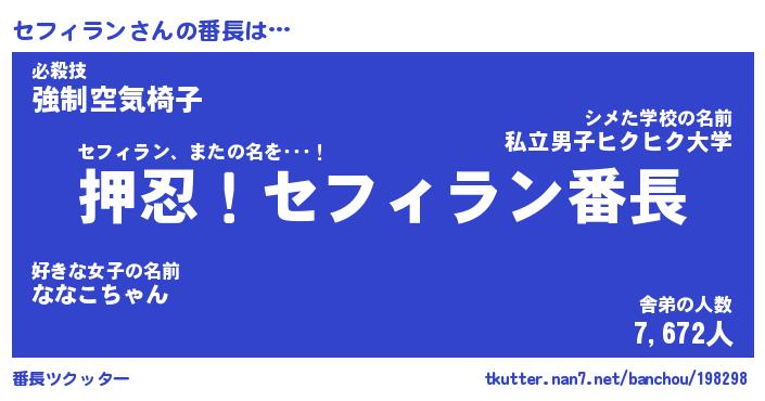 | 肩書あだ名 | 『セフィラン店長』『セフィラン国家主席』 |