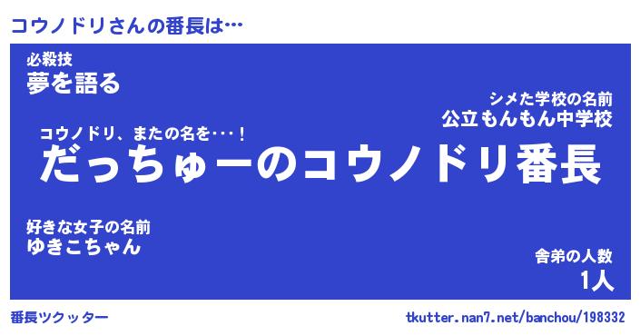 | ファンタジー風あだ名 | 『コウフェル』『エターナルコウノドリー』 |