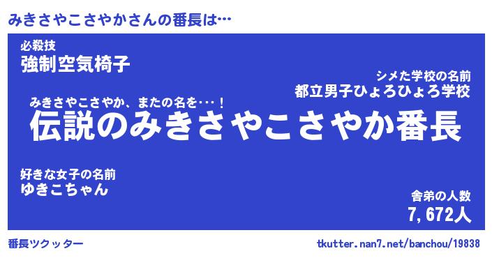 | ヒーロー風カッコイイあだ名 | 『スーパーミキサヤコサヤカ』 |