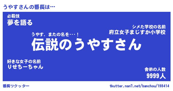 | ヒーロー風カッコイイあだ名 | 『スーパーウヤス』『ウルトラうやすマン』 |