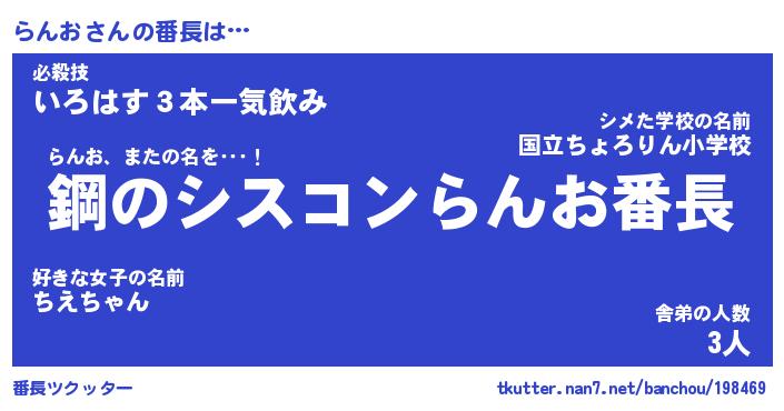 | 意味不明あだ名 | 『ペロリンらんお』『らんおフォーエバー』 |