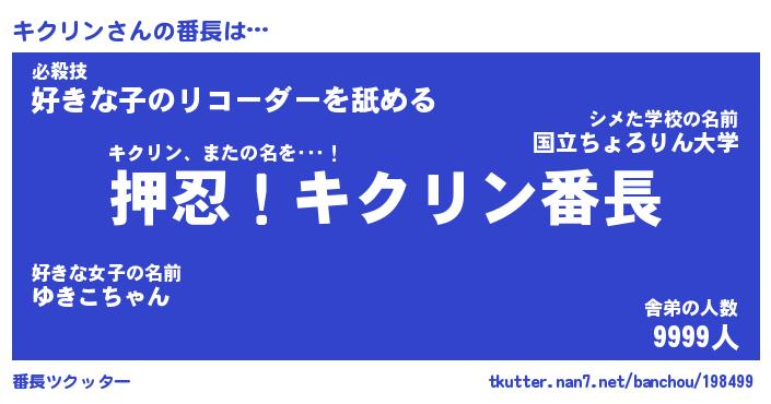 | 自動車の名前っぽいあだ名 | 『キクティマ』『キスラー』『キント』 |