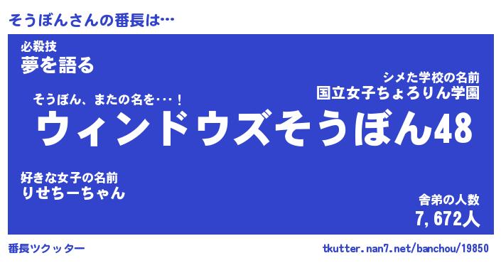 | 男性向けラノベタイトル風あだ名 | 『そうぼんの憂鬱』 |