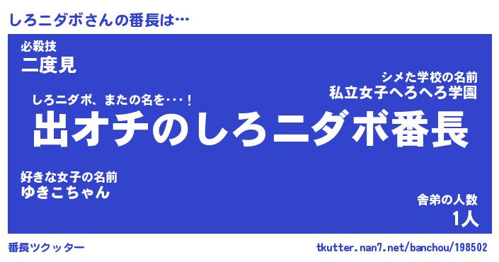 | ヒーロー風カッコイイあだ名 | 『スーパーシロニダボ』『黄金騎士シロ』 |