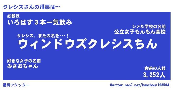 | 意味不明あだ名 | 『ペロリンクレシス』『永久保存クレシス』 |