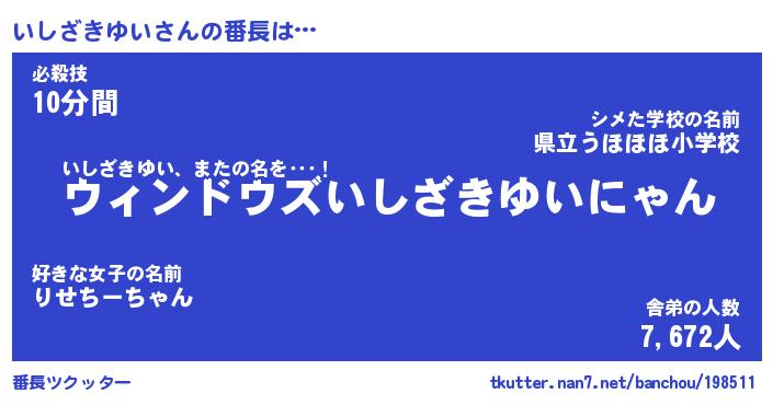 | ヒーロー風カッコイイあだ名 | 『スーパーイシザキユイ』『暗黒騎士イシ』 |