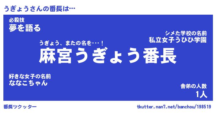 | 肩書あだ名 | 『うぎょう御曹司』『うぎょう大統領』 |