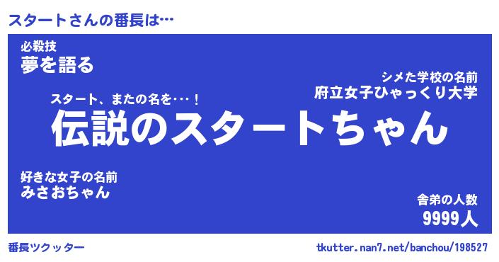 | ヒーロー風カッコイイあだ名 | 『スーパースタート』『天弓騎士スタ』 |