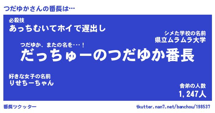 | ポケモン風あだ名 | 『ツダチュウ』『ツダユダネ』 |