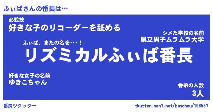 | 肩書あだ名 | 『ふぃば店長』『ふぃば大統領』 |