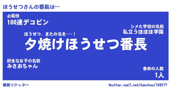 | ファンタジー風あだ名 | 『ホウフェル』『エターナルホウセツー』 |