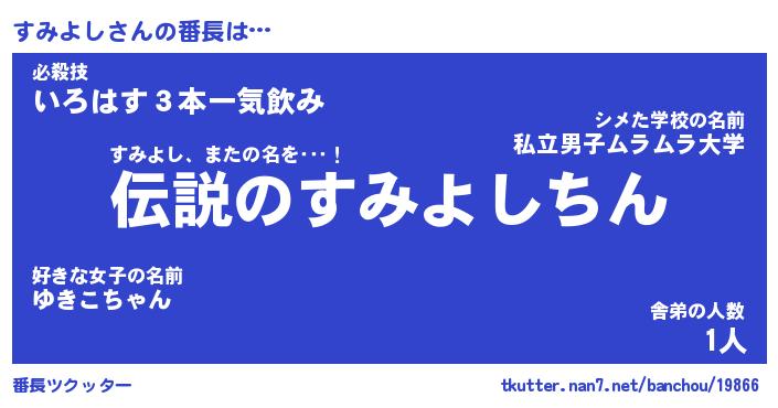 | 意味不明あだ名 | 『ペロリンすみよし』『永久保存すみよし』 |
