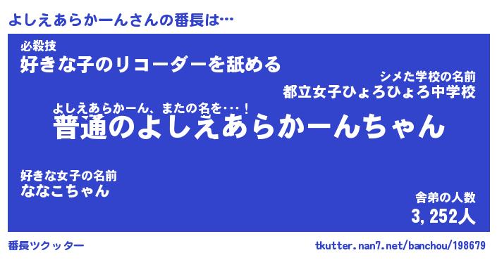 | ヘコむあだ名 | 『よしにゅー』『酢こんぶ』 |