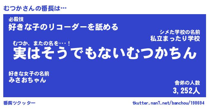 | ヒーロー風カッコイイあだ名 | 『スーパームツカ』『ウルトラむつかマン』 |