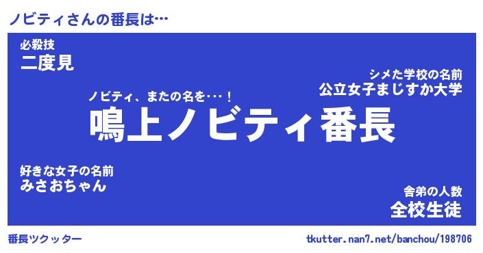 | ヘコむあだ名 | 『ノビもー』『酢こんぶ』『ノビお』 |