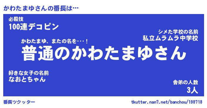 | 肩書あだ名 | 『かわたまゆ社長』『かわたまゆ総理大臣』 |