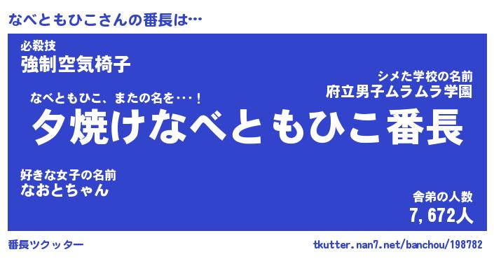 | ヒーロー風カッコイイあだ名 | 『スーパーナベトモヒコ』『炎刃騎士ナベ』 |