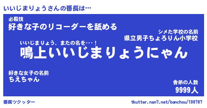 | ピコ太郎風あだ名 | 『イコ太郎』『ピイ史郎』『イイ三郎』 |