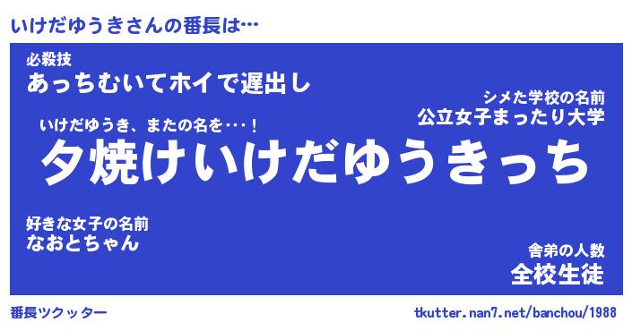 | ヘコむあだ名 | 『いけもー』『レバニラ』『いけっ子』 |