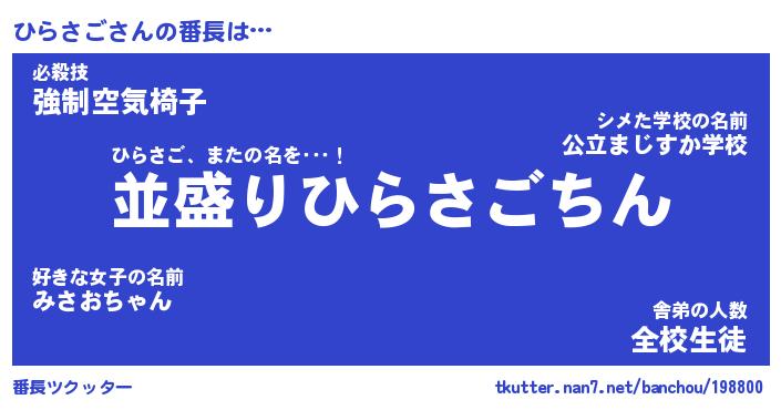 | ヒーロー風カッコイイあだ名 | 『スーパーヒラサゴ』『暗黒騎士ヒラ』 |