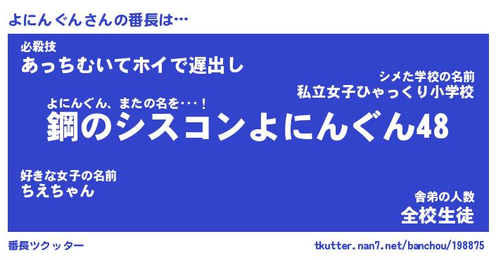 | 肩書あだ名 | 『よにんぐん店長』『よにんぐん国家主席』 |