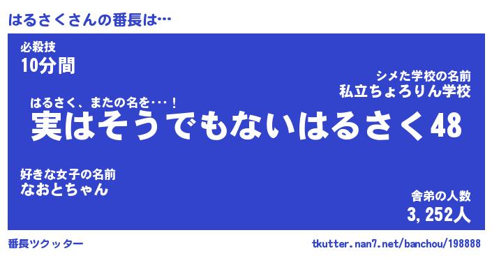 | 伝説のあだ名 | 『封印されしスナイパーはるさく』 |