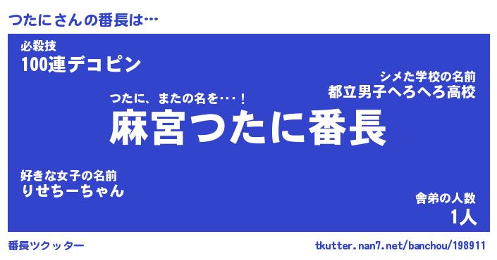 | ヘコむあだ名 | 『つたもー』『つくし』『つた太郎』 |