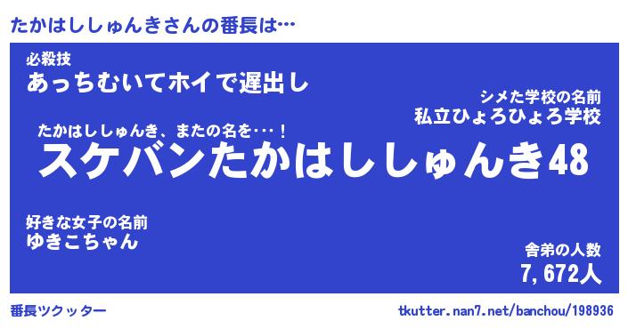 | ヘコむあだ名 | 『たかもー』『つくし』『たか太郎』 |