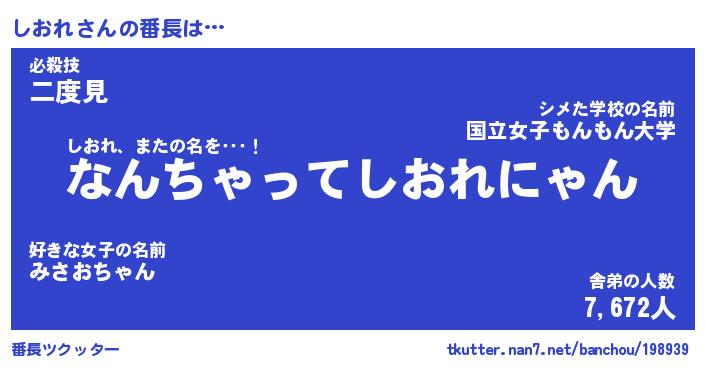 | 意味不明あだ名 | 『ペロリンしおれ』『しおれフォーエバー』 |